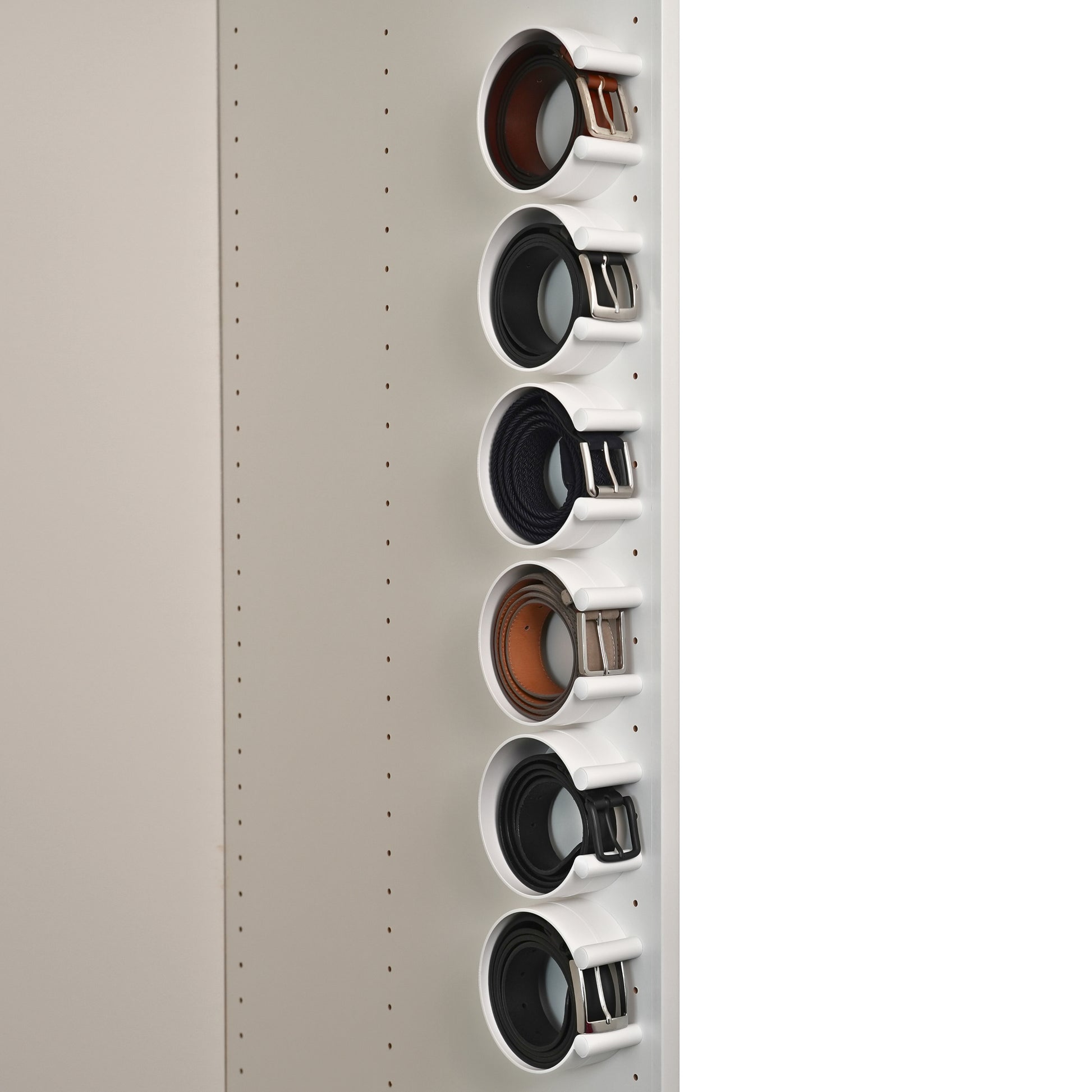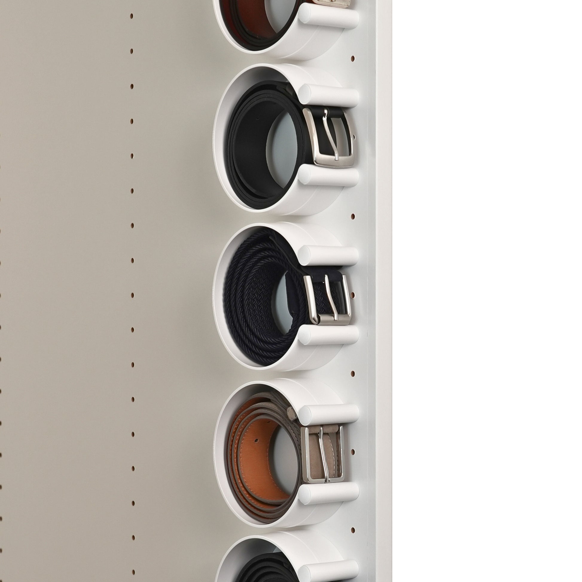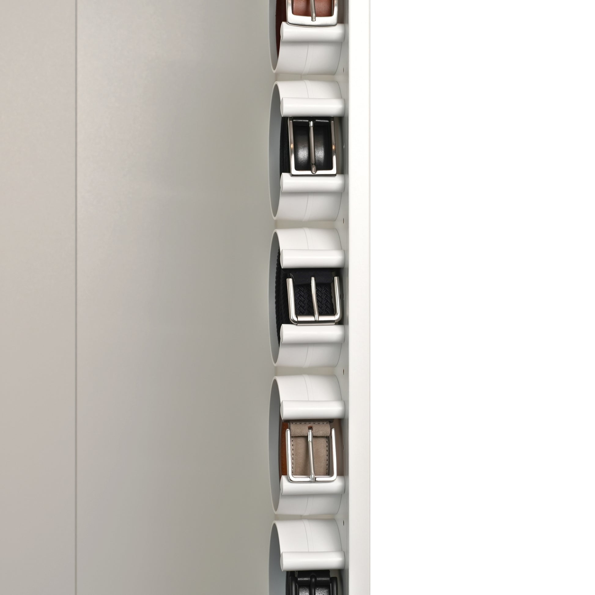 ease-c® is simply screwed into the existing holes (32 mm system with 5 mm holes) in your wardrobe – no drilling or gluing required. Belts are simply rolled up and inserted – that's it.